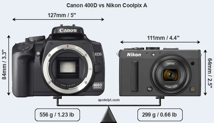 Specifications: Canon 400D vs Nikon Coolpix A