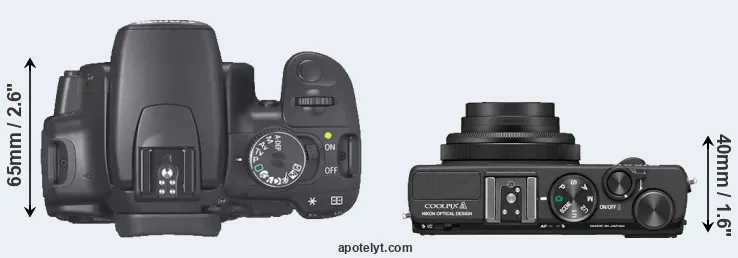 The above size and weight comparisons are to some extent incomplete and possibly misleading, as the Coolpix A has a lens built in, whereas the 400D is an interchangeable lens camera that requires a separate lens. Attaching the latter will add extra weight and bulk to the setup. You can compare the optics available for the 400D and their specifications in the Canon EF Lens Catalog.