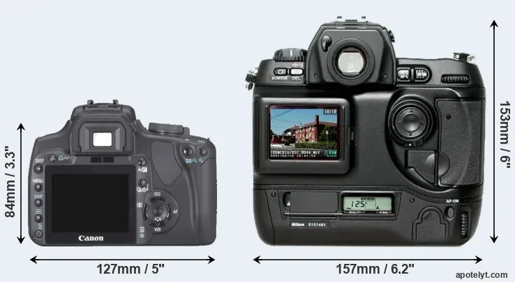 | 2. | Nikon D1H | 157 mm | 153 mm | 85 mm | 1100 g | 1200 | Y | Feb 2001 | US$ 4 499 | ebay.com | |