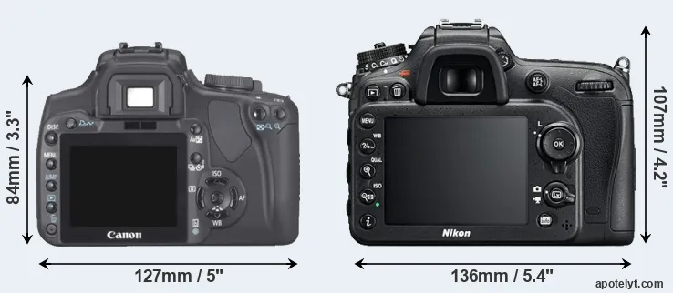 Specifications: Canon 400D vs Nikon D7200