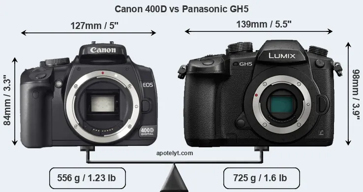 | Body Specs | Canon 400D | Panasonic GH5 |
