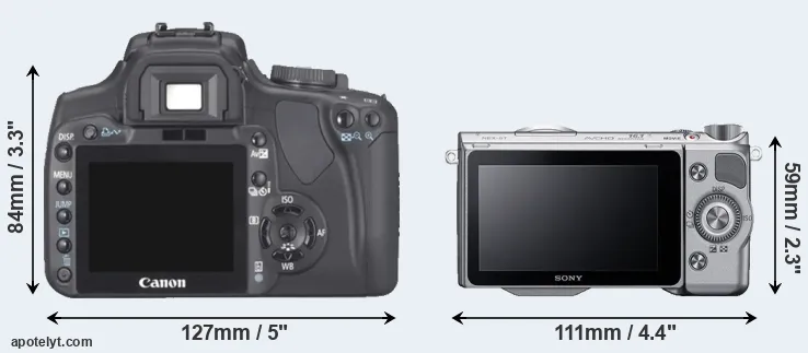 | Body Specs | Canon 400D | Sony NEX-5T |