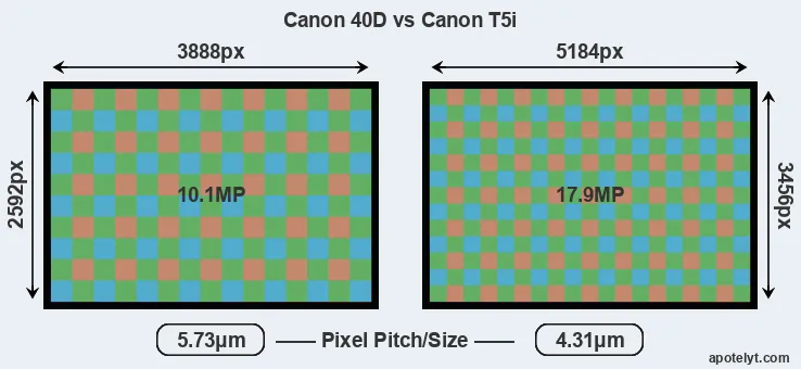 | Sensor Specs | Canon 40D | Canon T5i |
