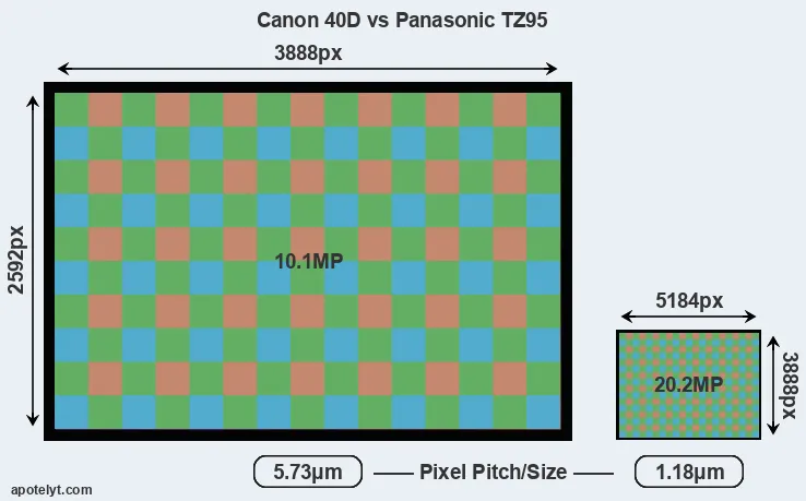 | Sensor Specs | Canon 40D | Panasonic TZ95 |