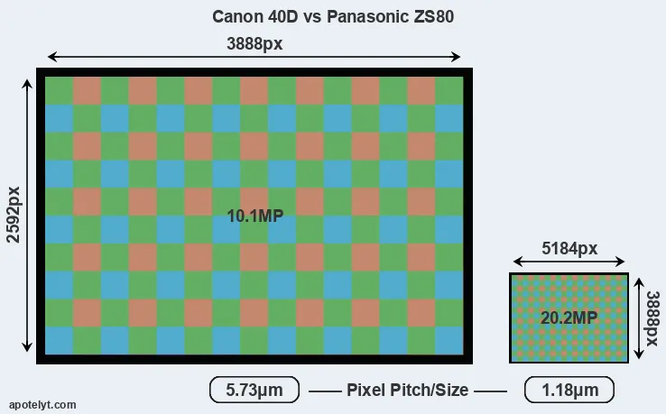| Sensor Specs | Canon 40D | Panasonic ZS80 |