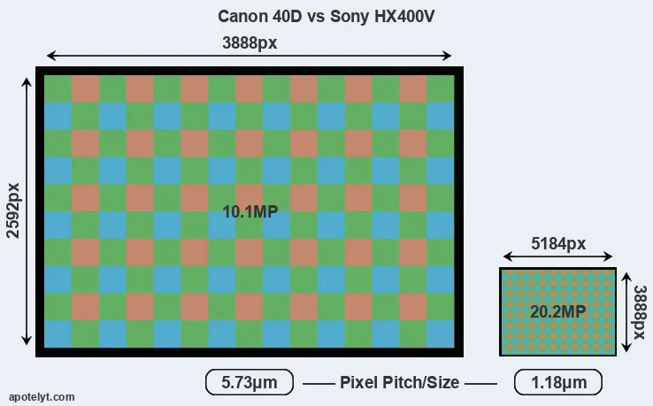 | Sensor Specs | Canon 40D | Sony HX400V |