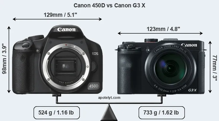 | Body Specs | Canon 450D | Canon G3 X |