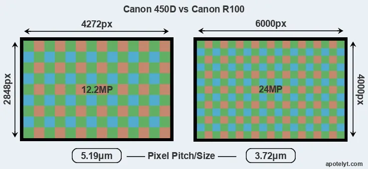 | Sensor Specs | Canon 450D | Canon R100 |