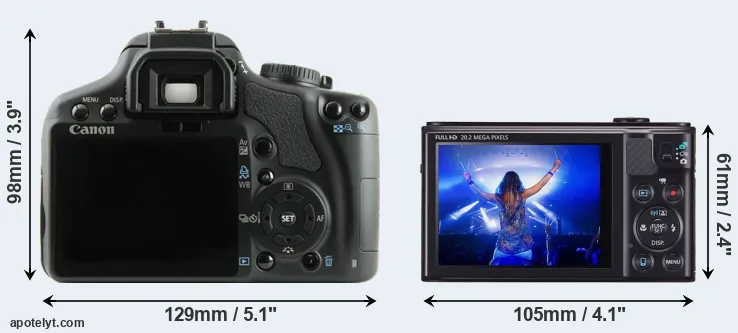 The above size and weight comparisons are to some extent incomplete and possibly misleading, as the SX610 has a lens built in, whereas the 450D is an interchangeable lens camera that requires a separate lens. Attaching the latter will add extra weight and bulk to the setup. You can compare the optics available for the 450D and their specifications in the Canon EF Lens Catalog.