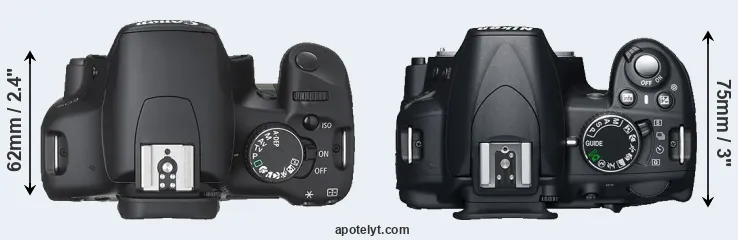 | 5. | Canon 650D | 133 mm | 100 mm | 79 mm | 575 g | 440 | n | Jun 2012 | US$ 849 | ebay.com | |