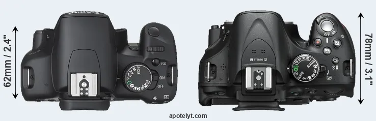 | 6. | Canon 750D | 132 mm | 101 mm | 78 mm | 555 g | 440 | n | Feb 2015 | EUR 699 | ebay.com | |