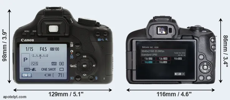 | Body Specs | Canon 500D | Canon R50 |