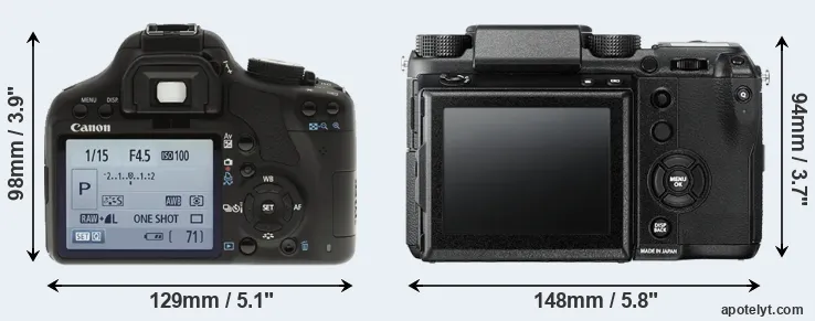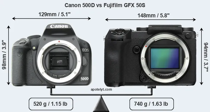 | Body Specs | Canon 500D | Fujifilm GFX 50S |
