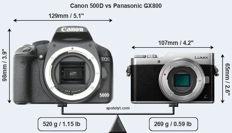 | Body Specs | Canon 500D | Panasonic GX800 |
