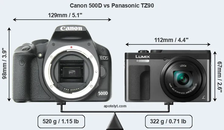 | Body Specs | Canon 500D | Panasonic TZ90 |