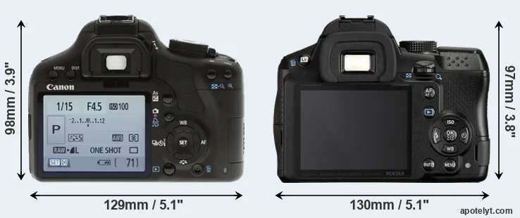 | Screen Specs | Canon 500D | Pentax K-30 |