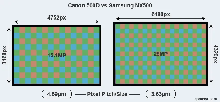 | Sensor Specs | Canon 500D | Samsung NX500 |
