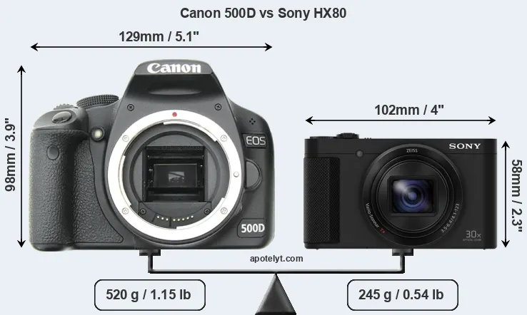 Size Canon 500D vs Sony HX80