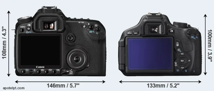 | 2. | Canon T3i | 133 mm | 100 mm | 80 mm | 570 g | 440 | n | Feb 2011 | US$ 599 | ebay.com | |