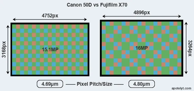 | Sensor Specs | Canon 50D | Fujifilm X70 |
