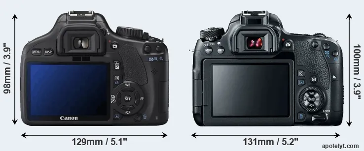 | 5. | Canon 600D | 133 mm | 100 mm | 80 mm | 570 g | 440 | n | Feb 2011 | EUR 549 | ebay.com | |