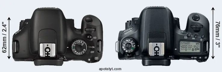 | 2. | Canon 77D | 131 mm | 100 mm | 76 mm | 540 g | 600 | n | Feb 2017 | EUR 899 | ebay.com | |