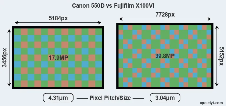 | Sensor Specs | Canon 550D | Fujifilm X100VI |