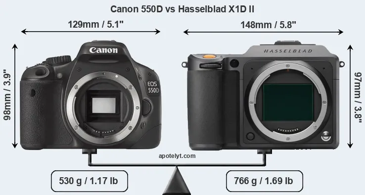 | Body Specs | Canon 550D | Hasselblad X1D II |