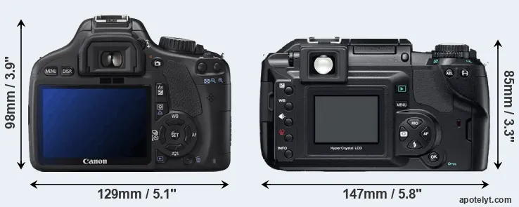 | 4. | Canon 600D | 133 mm | 100 mm | 80 mm | 570 g | 440 | n | Feb 2011 | US$ 599 | ebay.com | |