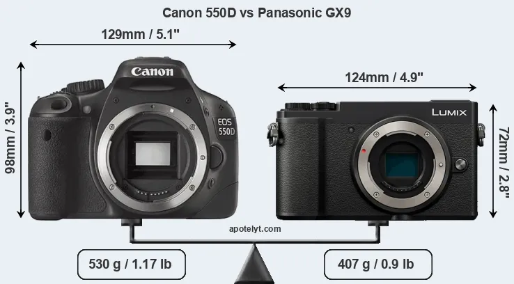 | Body Specs | Canon 550D | Panasonic GX9 |