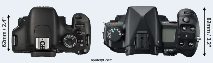 | 6. | Canon 700D | 133 mm | 100 mm | 79 mm | 580 g | 440 | n | Mar 2013 | US$ 649 | ebay.com | |