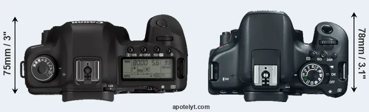 | 2. | Canon 750D | 132 mm | 101 mm | 78 mm | 555 g | 440 | n | Feb 2015 | US$ 749 | ebay.com | |