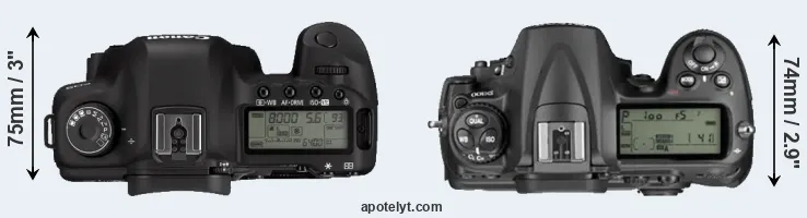 | 13. | Nikon D2Xs | 158 mm | 150 mm | 86 mm | 1252 g | 3800 | Y | Jun 2006 | US$ 4 699 | ebay.com | |