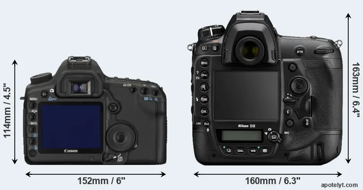 | 7. | Canon 5D Mark III | 152 mm | 116 mm | 76 mm | 950 g | 950 | Y | Mar 2012 | US$ 3 499 | ebay.com | |