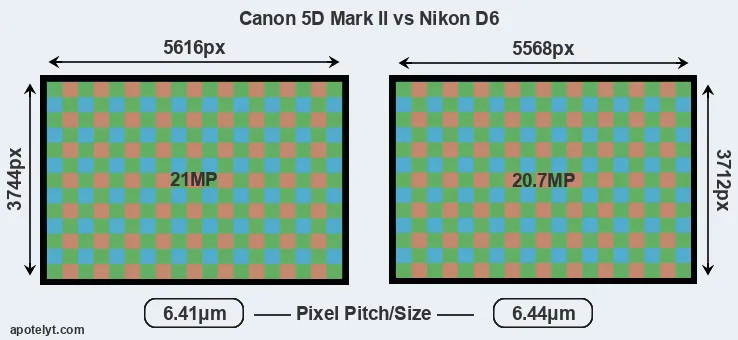 | Sensor Specs | Canon 5D Mark II | Nikon D6 |