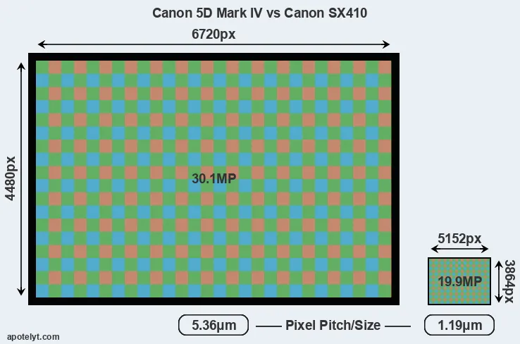 | Sensor Specs | Canon 5D Mark IV | Canon SX410 |
