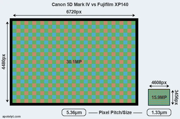 | Sensor Specs | Canon 5D Mark IV | Fujifilm XP140 |