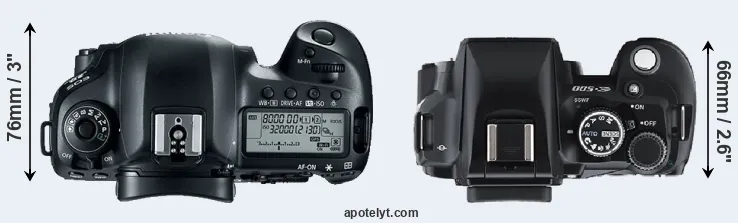 | 7. | Canon 5DS | 152 mm | 116 mm | 76 mm | 930 g | 700 | Y | Feb 2015 | US$ 3 699 | ebay.com | |
