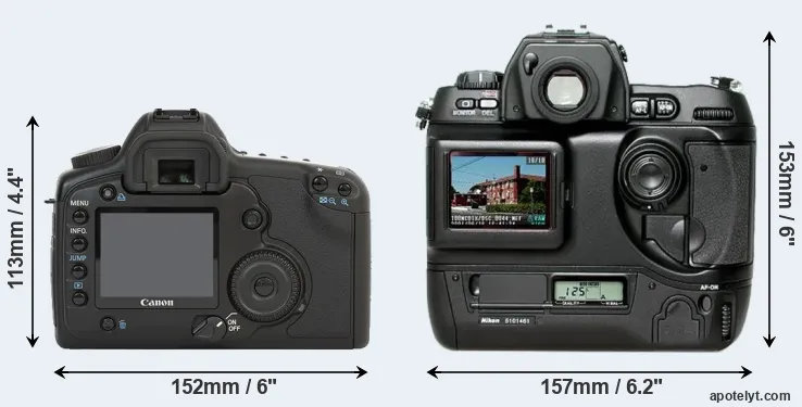 | 2. | Nikon D1H | 157 mm | 153 mm | 85 mm | 1100 g | 1200 | Y | Feb 2001 | US$ 4 499 | ebay.com | |