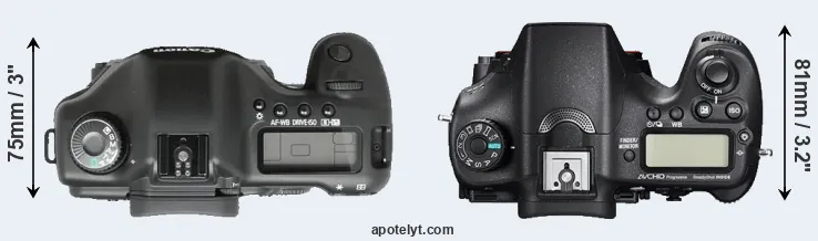 | 5. | Canon 1Ds Mark II | 156 mm | 158 mm | 80 mm | 1215 g | 1200 | Y | Sep 2004 | US$ 7 999 | ebay.com | |