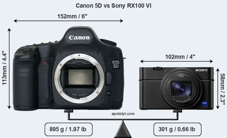 | Body Specs | Canon 5D | Sony RX100 VI |