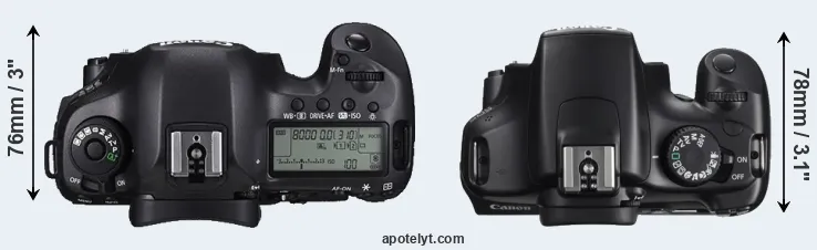 | 6. | Canon 5D Mark III | 152 mm | 116 mm | 76 mm | 950 g | 950 | Y | Mar 2012 | US$ 3 499 | ebay.com | |