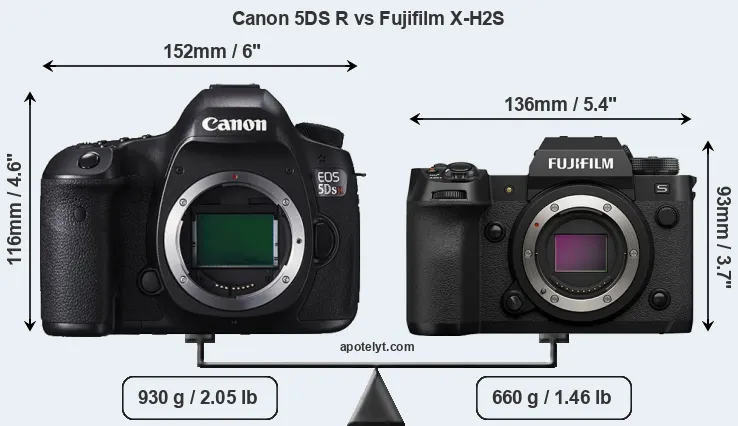 | Body Specs | Canon 5DS R | Fujifilm X-H2S |