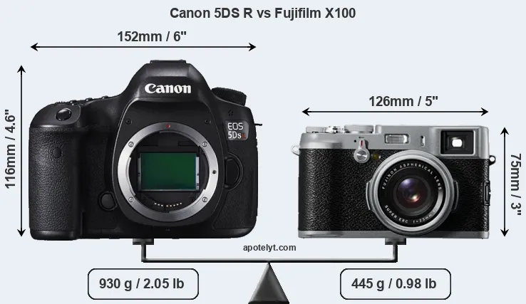 Size Canon 5DS R vs Fujifilm X100