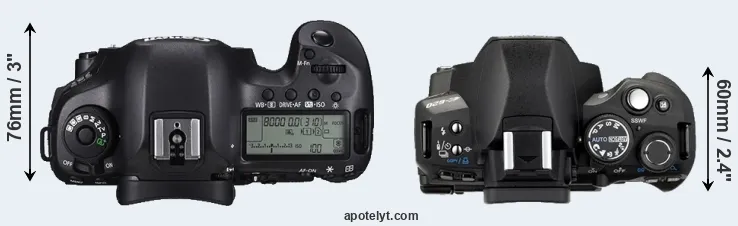 | 6. | Canon 5D Mark III | 152 mm | 116 mm | 76 mm | 950 g | 950 | Y | Mar 2012 | US$ 3 499 | ebay.com | |