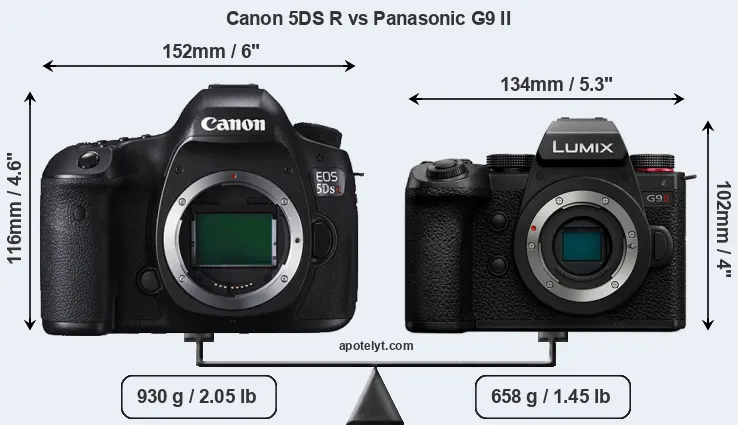| Body Specs | Canon 5DS R | Panasonic G9 II |