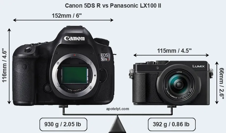 | Body Specs | Canon 5DS R | Panasonic LX100 II |