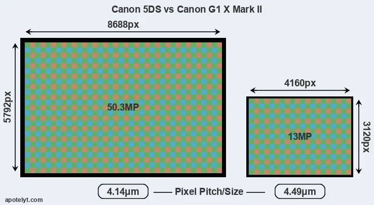 | Sensor Specs | Canon 5DS | Canon G1 X Mark II |