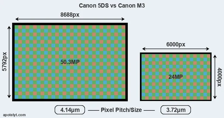| Sensor Specs | Canon 5DS | Canon M3 |