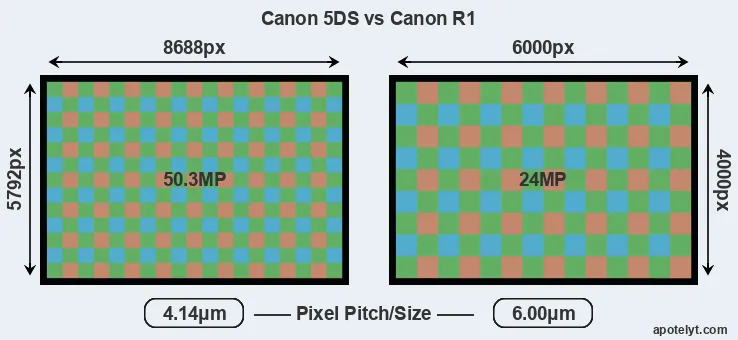 | Sensor Specs | Canon 5DS | Canon R1 |